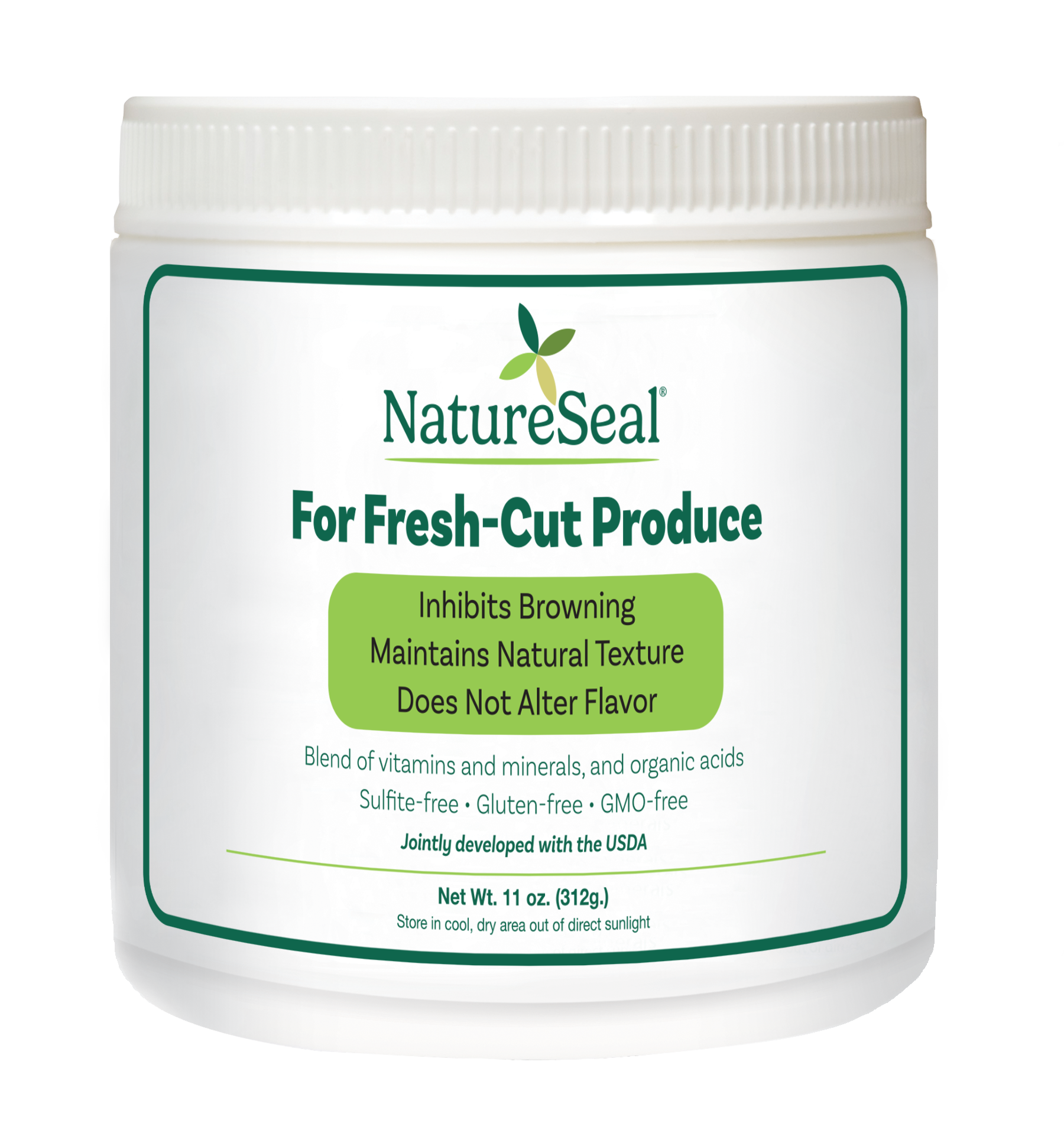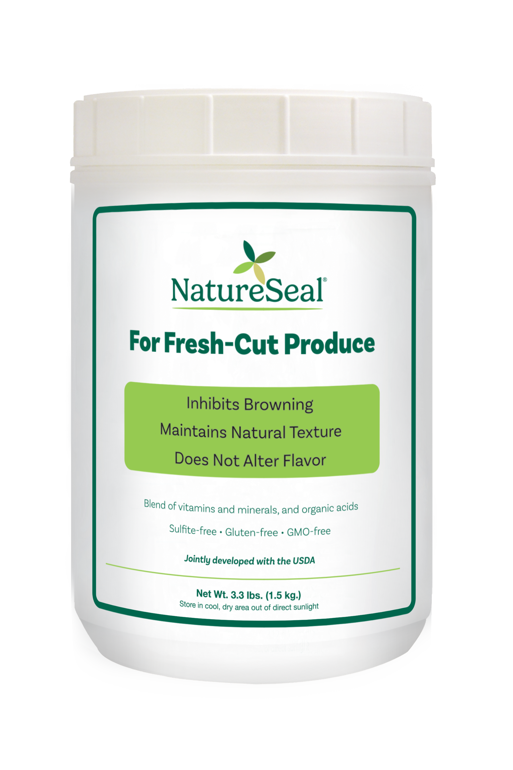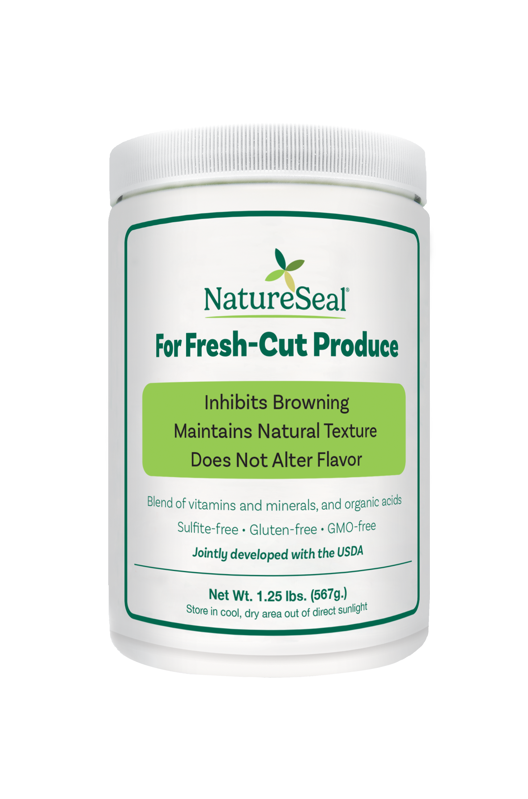 NatureSeal® for Fresh-Cut Produce is a wholesome blend of vitamins and minerals that protects fresh-cut fruits and vegetables from oxidation. Originally developed and patented with the USDA, NatureSeal eliminates browning in cut produce for up to 14 days, maintaining the natural texture and color, without altering the flavor. Extend the shelf-life of a wide variety of cut fruits and vegetables, including, apples, pears, stone fruit, carrots and celery.