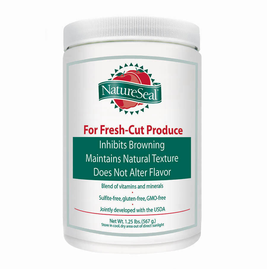 NatureSeal® for Fresh-Cut Produce is a wholesome blend of vitamins and minerals that protects fresh-cut fruits and vegetables from oxidation. Originally developed and patented with the USDA, NatureSeal eliminates browning in cut produce for up to 14 days, maintaining the natural texture and color, without altering the flavor. Extend the shelf-life of a wide variety of cut fruits and vegetables, including, apples, pears, stone fruit, carrots and celery.